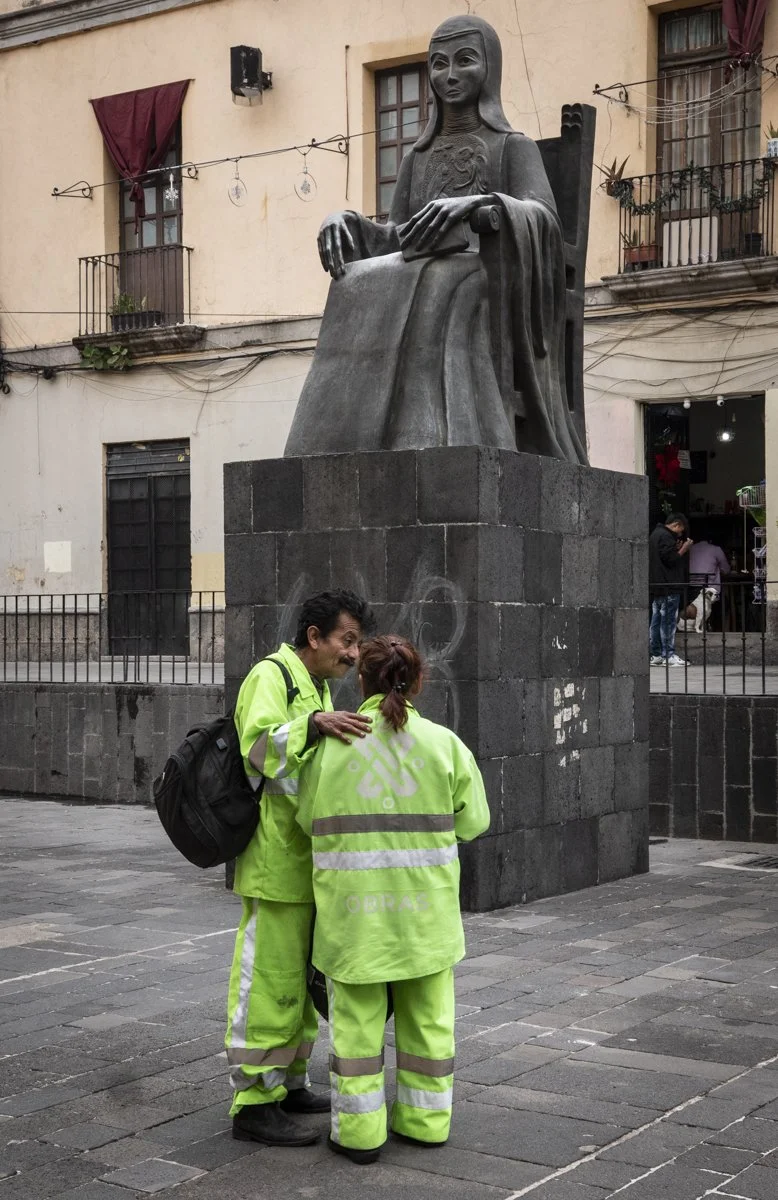 In another corner, you see a group of sanitary workers. Despite rumors that they work only for tips, their commitment is unwavering. Today, they are together, helping each other through the day.